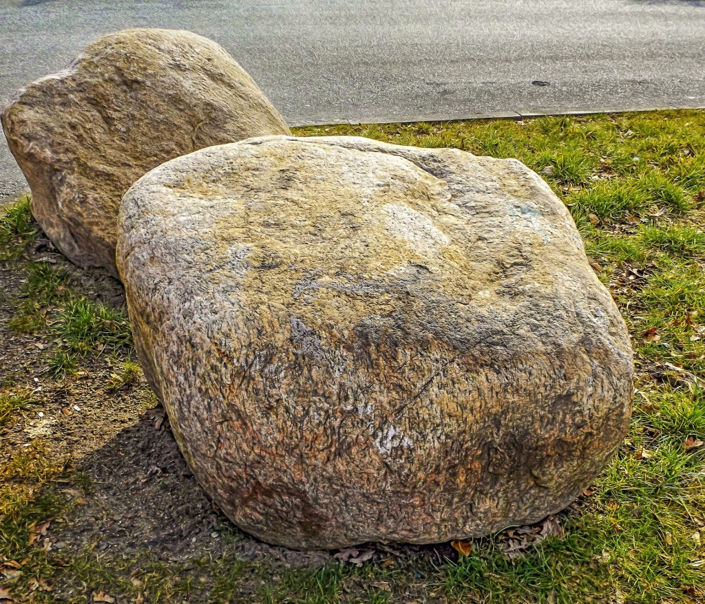 Another area you can copycat is landscaping. I live in an area with a very pronounced pride of lawns. I see it every spring when the mulching trucks are trundling up and down the streets. Everyone, it seems, has pride of lawn where I live. As for us? My partner is obsessed with a lush green lawn. Obsessed. I myself like landscaping that is clean, spare and minimal which is fortunate because it complements my frugal nature quite well. That being the case, I still needed to augment my runoff system for my new gutters. I did some research and rocks, about the size of softballs up to footballs, was the ideal solution. I just needed to lay a path of rocks to help the water drain away from my house.